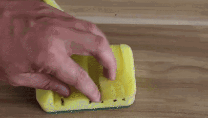先把海綿放在窗沿上,用筆沿著凹凸處一一描點(diǎn)標(biāo)記,再用剪刀沿著點(diǎn)修剪海綿,使其剛好能安放在窗縫處。倒入適量清潔劑,放上修好的海綿來回擦拭,不用多久就很干凈啦!