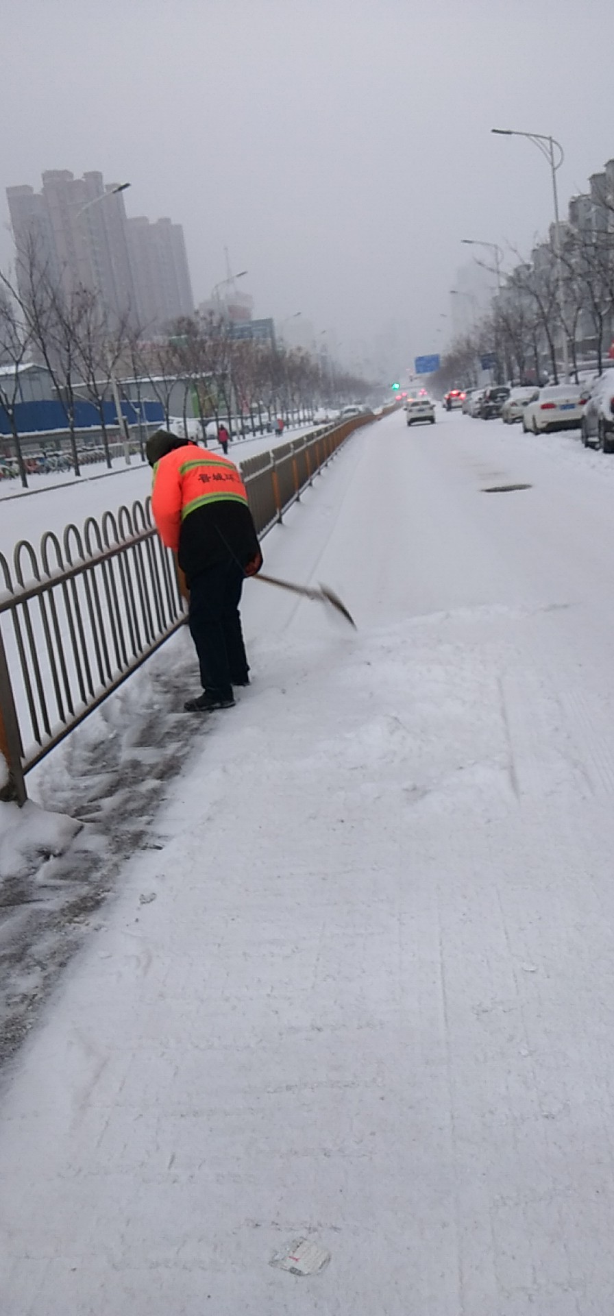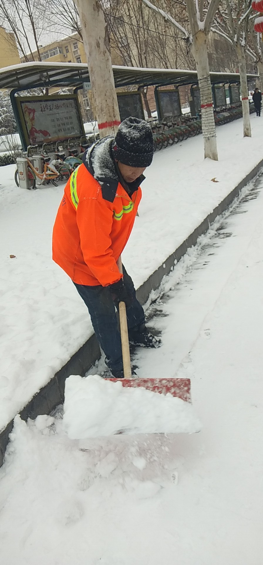 為保障大家出行安全,認真鏟除地面殘冰。