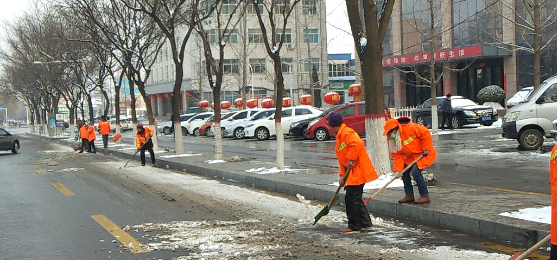 新年的第一場大雪,到處銀裝素裹,扮美了整個晉城,但大雪帶來美景的同時,也給大家的出行帶來了不便。為保障大雪期間出行安全,潔霸公司各保潔點的負責人積極組織員工進行主干道積雪清掃,在除雪過程中,雖然天氣寒冷,但大家除雪的熱情卻不減,大家有的撒融雪劑,有的 清掃積雪,有的用鏟子除冰,奏響鏟雪破冰進行曲。