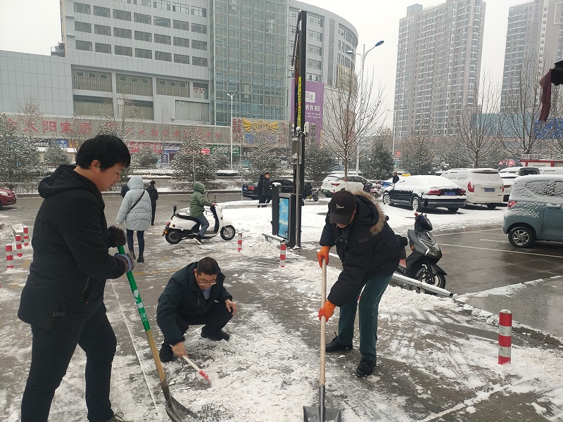 一鏟、一揮、一掃,原本有很多積雪的地面干凈了不少。但由于路中間積雪沒有及時清理,被車輛碾壓,給清除冰雪造成很大的困難。公司副總經(jīng)理張永借來兩把鏟子,身先士卒,鏟除冰雪。工具得手了,清除積雪的速度大大加快了。大家頂著寒風(fēng),團(tuán)結(jié)協(xié)作,干勁十足,熱火朝天,為寒冷的冬日注入了一股暖流。