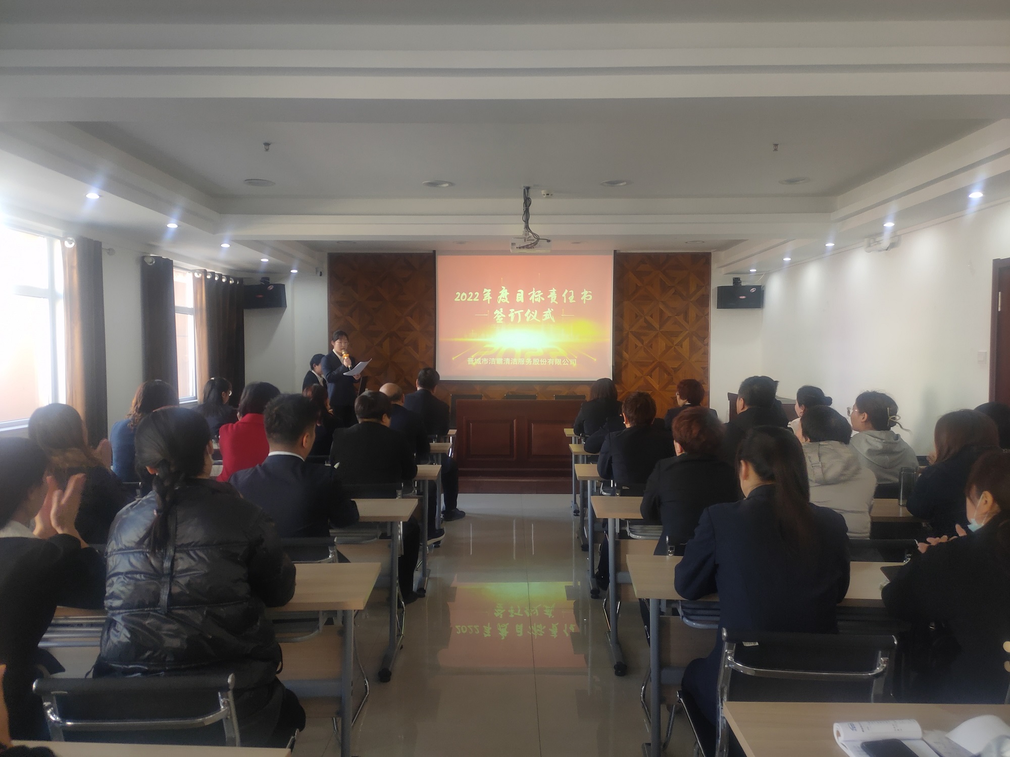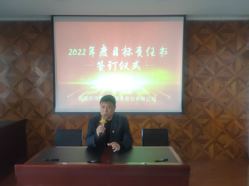 為落實(shí)公司2022年工作會(huì)議精神,進(jìn)一步壓實(shí)責(zé)任,確保年度工作目標(biāo)的順利完成, 3月1日下午,晉城市潔霸清潔服務(wù)股份有限公司在活動(dòng)中心組織召開2022年度目標(biāo)責(zé)任書簽訂會(huì)議。公司黨支部書記、總經(jīng)理程晉軍,副總經(jīng)理張永智、史志霞,經(jīng)理助理,各子公司、分公司、部門經(jīng)理及項(xiàng)目負(fù)責(zé)人、主管等參加會(huì)議。