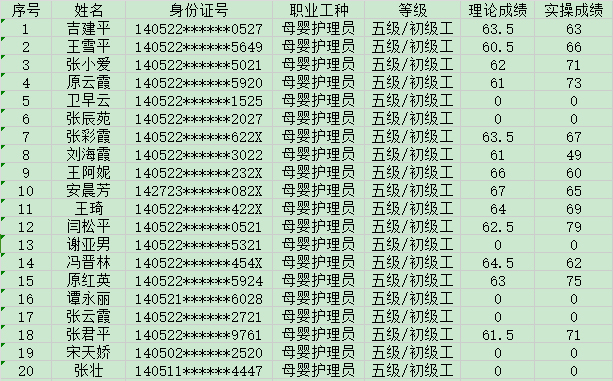 晉城市潔霸清潔服務(wù)股份有限公司職業(yè)技能等級(jí)認(rèn)定中心現(xiàn)將2024年10月14日認(rèn)定人員成績(jī)公示如下: