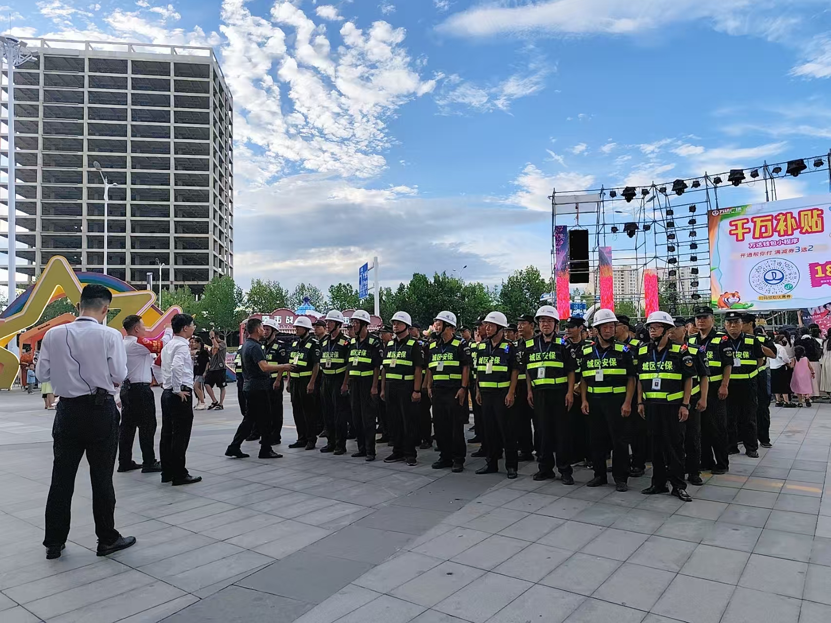 活動(dòng)期間,城區(qū)保安人員按照既定方案,每天晚上6點(diǎn)到崗到位,配合公安、消防等部門做好秩序維護(hù)、交通疏導(dǎo)及服務(wù)保障等工作。出入口崗位的保安負(fù)責(zé)引導(dǎo)群眾有序進(jìn)出,舞臺(tái)周邊的保安重點(diǎn)維護(hù)觀眾秩序,防止擁擠、踩踏等危險(xiǎn)情況發(fā)生。盡管每天晚上工作時(shí)間長(zhǎng)達(dá)6小時(shí),他們時(shí)刻保持警惕,沒有絲毫放松。現(xiàn)場(chǎng)人流量一度突破萬人次,但執(zhí)勤保安始終用規(guī)范的動(dòng)作、耐心的態(tài)度引導(dǎo)人流,以嚴(yán)謹(jǐn)?shù)墓ぷ髯黠L(fēng)和飽滿的精神狀態(tài)為活動(dòng)保駕護(hù)航。