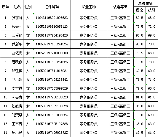 山西潔霸清潔服務集團股份有限公司職業(yè)技能等級認定中心現(xiàn)將2025年9月13日認定人員成績公示如下: